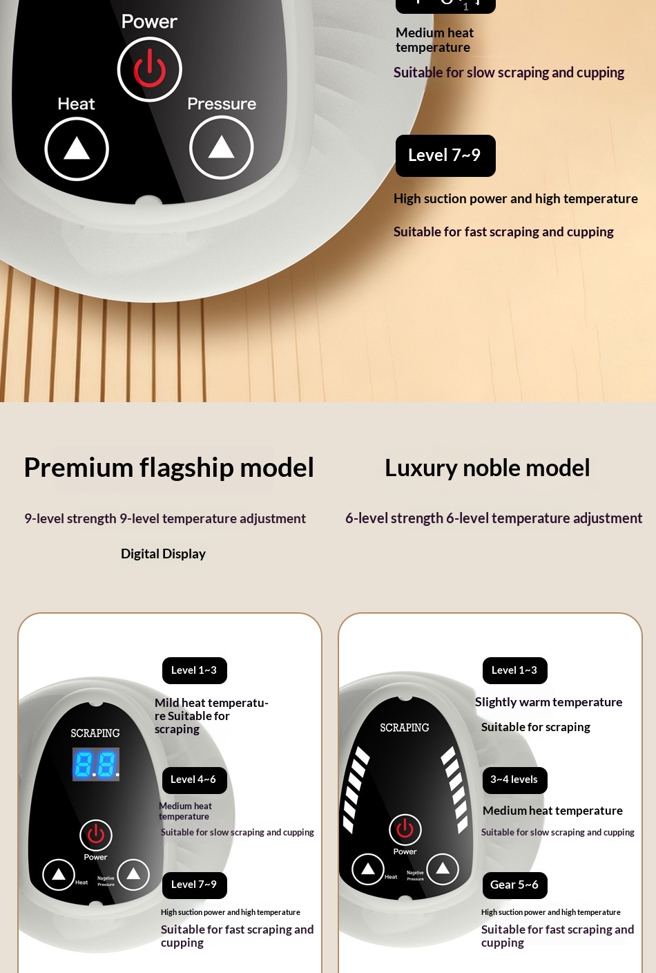 Colors: Rechargeable Flagship Model in Gold (9-speed, with digital display), Rechargeable Flagship Model in Red (9-speed, with digital display), Rechargeable Premium Model in Gold (6-speed), Rechargeable Premium Model in Red (6-speed)